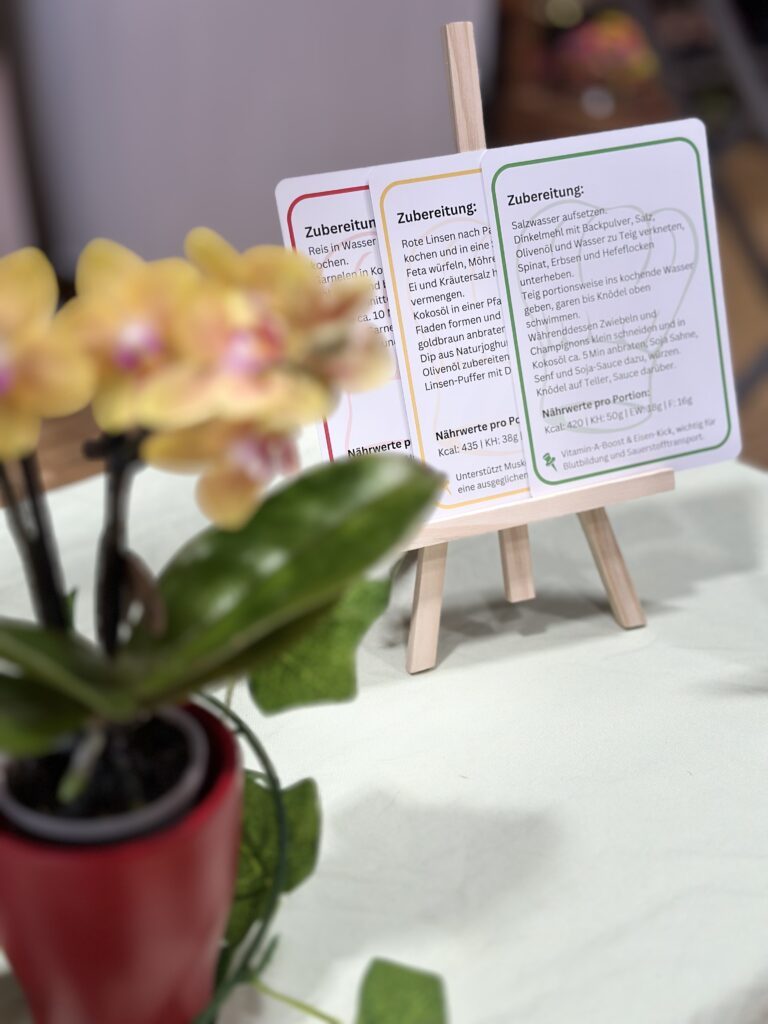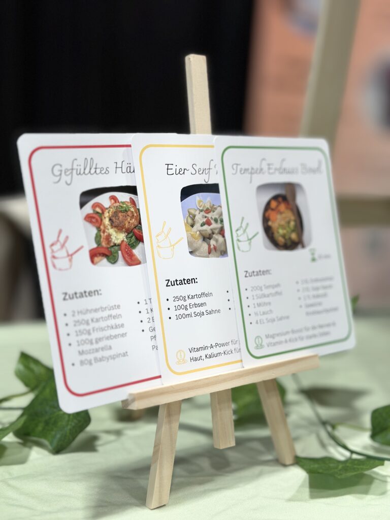 Jede Karte ist so gestaltet, dass du sofort siehst, was du brauchst, wie lange das Gericht dauert und wie du es zubereitest. Die Struktur ist bewusst einfach gehalten, damit Kochen leicht fällt – auch nach einem langen Tag! Die Karten enthalten: